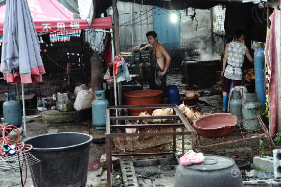 探访广西玉林狗肉屠宰场 动保人士与肉贩对峙
