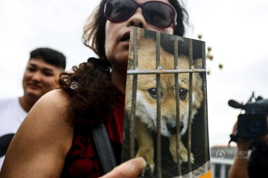 图为6月21日,广西玉林,爱狗人士现场发传单。
