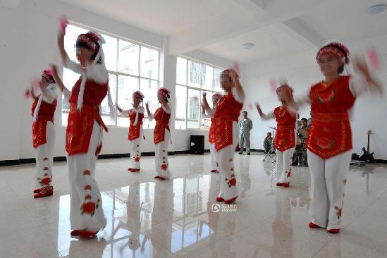 在戒毒所里,阿秀参加了艺术团,为其他学员表演舞蹈等节目,还经常到校园、社区现身说法,讲述毒品的危害。图为6月23日,阿秀(左二)在云南大理强制隔离戒毒所内和其他学员一起表演民族舞蹈。新华社记者 蔺以光 摄