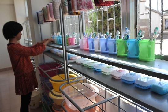 6月23日,阿秀在大理戒毒所内整理牙刷和杯子。新华社记者 蔺以光 摄