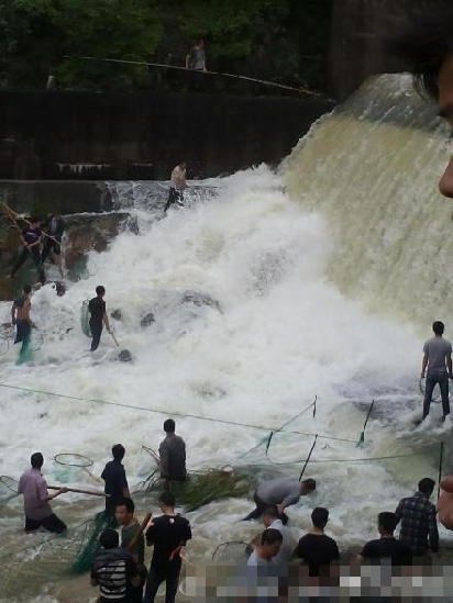 浙江衢州水库开闸泄洪 村民冒险捕鱼