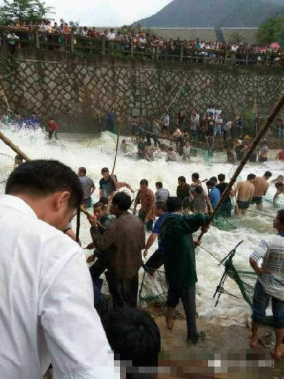 浙江衢州水库开闸泄洪 村民冒险捕鱼