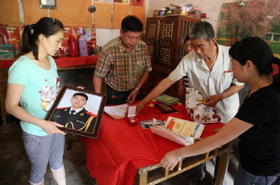 前段时间,徐园从部队回到固镇老家。“我是一名军人,要在最后一刻帮助他人。”回来之后,他说出自己最后的愿望,要在去世之后无偿捐献自己的眼角膜。这一想法得到了家人的支持。徐园在部队里荣立三等功三次,9次优秀士兵,是一名优秀的军人,他的父亲左前然,母亲徐树兰还有妻子刘文丽将国旗包裹的遗照和各类荣誉证书,军功章拿出来。