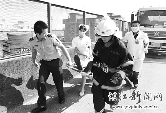 演练模拟情景设为:当天下午一油罐车因右前轮爆胎失控碰撞平石大桥护栏,导致汽油出现泄漏,车上2名司乘人员受伤被困,部分汽油沿大桥排水沟泄漏至桥底……整个演习持续20多分钟,演练流程分信息上报、现场预警、火情处置和撤离现场等。