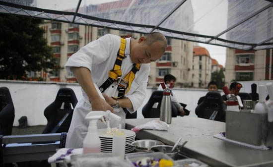 首次升空的时间大约在50分钟,其中包括升降的时间。记者看到菜单,这其中包括了“红甜椒慕斯配番茄和黄瓜、海鲈鱼挞挞配蘘荷伴青柠汁、蟹肉提拉米苏配桃子泥伴生姜”三道菜,并有专门的侍者服务。