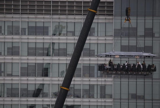 上海现“空中餐厅” 吊车牵引悬空50米就餐