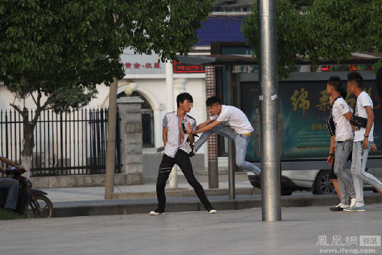 6月29日,湖北襄阳,一群放假的中学生在南湖广场玩耍时,不知为什么突然打起架来。多名学生围打其中的一人,有人拿着砍刀挥舞,所幸被路人及时喝止。被打的学生后来脱下上衣,身上有多道红印。打架原因不明。
