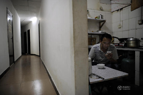 夜深人静时,邱培亮偷偷地跑到屋外的厨房里,通过手机查看孩子的病情。