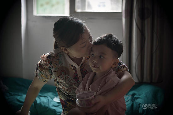 看见长时间不进食狗狗吃下一口冰激凌后,何成琴含泪亲吻着他。