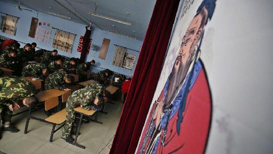 2014年2月19日,北京,启德教育中心的学生学习儒家礼仪。