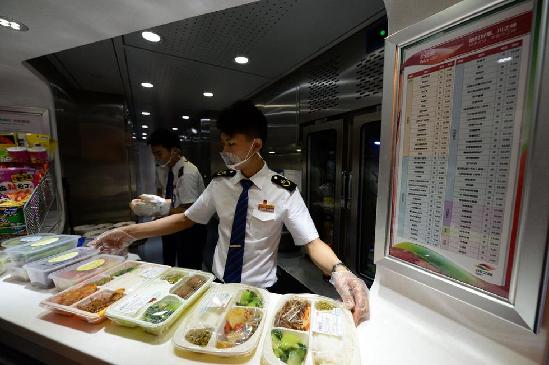列车提供从15元到40元不等的套餐,除此之外还有诸如鱼香肉丝、仔姜牛肉等热菜和烧仙草等甜点。