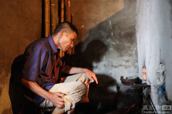 2012年6月,湖南高院终审维持了永州中院以强迫卖淫罪、组织卖淫罪,判处秦星死刑的判决。秦顺元想去最高院反映情况,不想刚上火车就晕倒了,秦军只能接替父亲。7年里,他被卷入无休止的奔波,“可不跑跑不问问,又不行”。图为秦星的父亲秦顺元在厨房烧火。