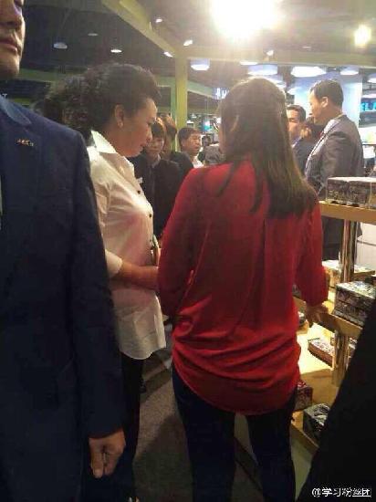 粉丝在韩国东大门偶遇彭丽媛,据称给习近平买了个大蛋糕。
