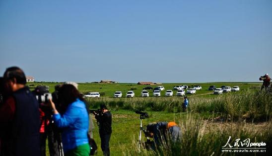图为乘客正在拍摄马群。