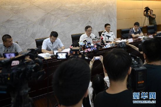 7月6日,杭州市卫生局副局长、新闻发言人杨建华(后排左三)在新闻发布会通报杭州“7·5”公交车放火案伤员救治情况。