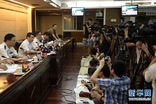 7月6日,杭州市政府召开新闻发布会通报杭州“7·5”公交车放火案情况,杭州市公安局相关负责人表示,目前放火犯罪嫌疑人已经锁定,警方现已锁定放火嫌疑人系公交车内被烧成重伤的一名男子。新华社记者 鞠焕宗 摄