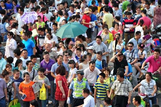 众多家长冒着酷暑在场外候考,场面堪比高考。