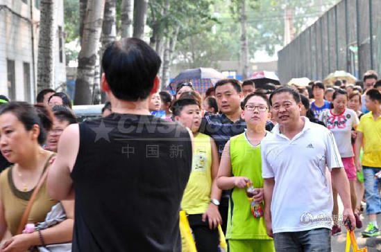 众多家长冒着酷暑在场外候考,场面堪比高考。