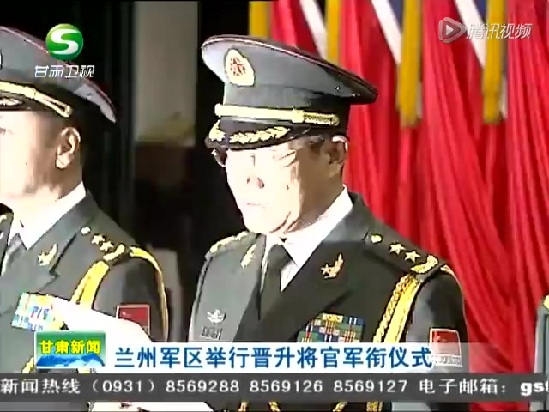 2014年7月7日下午,兰州军区隆重举行晋升将官军衔仪式,兰州军区司令员刘粤军宣读了中央军委习近平主席签署的晋升命令,兰州军区政委苗华主持晋衔仪式。(甘肃卫视视频截图)