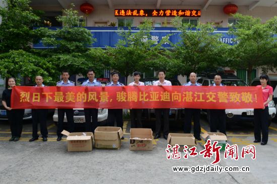 湛江新闻网讯:7月9日,骏腾公司代表来到交警麻章大队,送来五大箱清补凉防暑降温用品,为奋战在路面一线的麻章交警送去一份清凉,带来夏日深情的问候。连日来,我市进入高温酷暑的天气,广大交警坚守岗位,顶着炎炎烈日坚守在马路一线,奋战在“创卫”攻关的前沿,给市民出行和交通顺畅提供有力保障。骏腾公司作为驻地企业,被麻章交警连续奋战在路面高温一线的敬业精神所感动,专程带上防暑降温用品来到交警麻章大队,给战高温、抗酷暑的麻章交警送上清凉的问候,以表达企业对一线交警的敬意!
