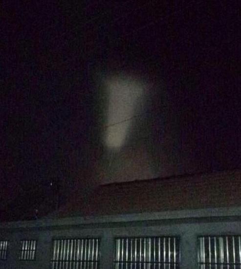 山东潍坊诸城2014年07月09日出现20点58分天空出现不明强光物体。(网友供图)