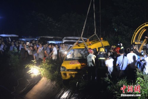 湖南湘潭超载校车翻入水库致8名幼儿遇难