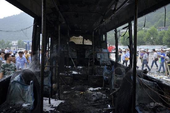 在这次演练中,充当道具的公交车几乎被烧成了骨架。罗伟 摄