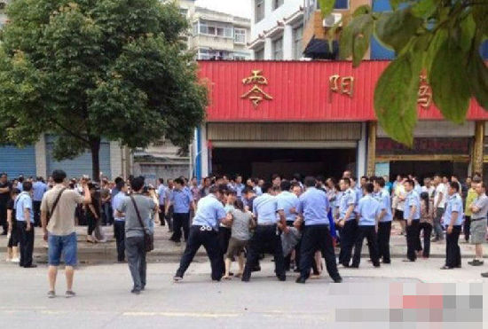 百余名警察和两辆救护车赶到现场,要求家属和围观者撤离。