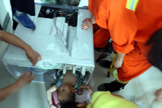 洗衣机“鲸吞”三岁男童 消防官兵紧急救援