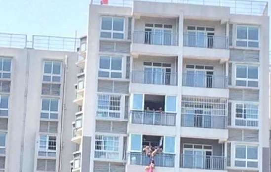 据目击者王先生介绍,当时他正在该小区对面的商铺里。“我看到对面小区有个人悬挂在11楼的窗户外边。”王先生报了警并用手机拍下了照片。让王先生感到奇怪的是,11楼窗户有防盗栏,人不可能从阳台出来。“所以,我估计她是从楼上跳下来,遭11楼防护栏挡住了。”