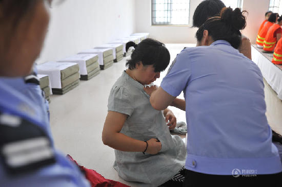 警员帮艾弘换衣服。