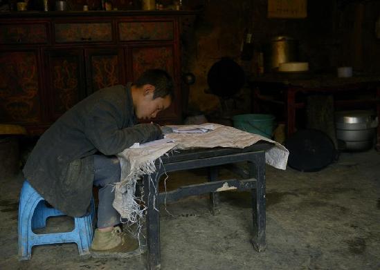康康回到家后,总是坐到堂屋靠门的地方做作业,这里可以借助外面透进来的自然光线完成功课,不用开灯又能节省一些耗电。