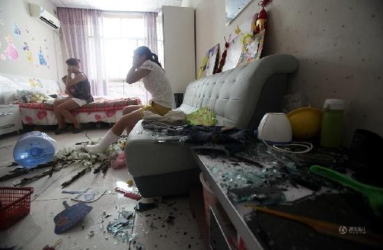 当晚,同村村民李某某家也遭到打砸,而且一晚上去了两次。李某某的妻子说,第一次是凌晨1时许,当她被踹门声吵醒出来看时,十几个手持刀、棍的男子已经进到大厅。“被打后老李准备进屋取棍子反抗,却被一棍打中头顶,当时血就流下来,那些人又进屋打砸了一会就走了。”她说。图为村民李某某家被砸得乱七八糟,儿媳姚女士左腿被打骨折。黄利健 摄