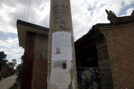 附近乡村贴了2万多份协查通报通缉嫌犯。7月21日,长安区鸣犊街办黎明村。一张通缉疑犯惠某的悬赏公告张贴在村道旁的电线杆上。