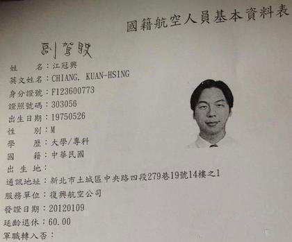 副驾驶江冠兴现年39岁,飞行时数为2300个小时。“民航局”表示,两人生死不明。