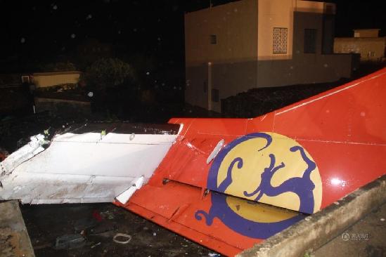 据当地洪姓居民转述现场情形,附近居民看见“一团火球”往下坠,冲撞民宅,赶到现场,屋子墙壁被撞破,飞机坠毁处里外“都是尸块”,场面触目惊心,并还有火光,民众全都吓坏了。图为客机失事事故现场,飞机残体。