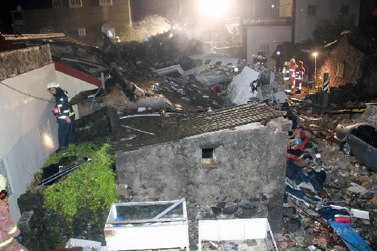 “消防署”表示,8名烧烫伤的机组员及乘客,已送往澎湖三总和澎湖医院急救,由于“民航局”还在调查事故原因,无法确定是否与“麦德姆”台风有关,尚未列入台风灾情中。图为飞机坠毁撞入民宅中。