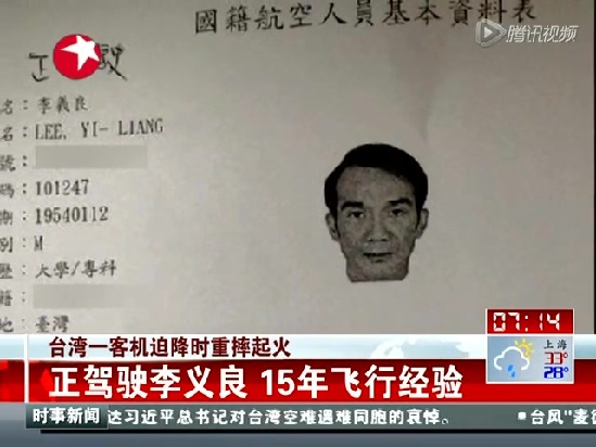 正驾驶:李义良,飞行经验22年,总飞航时数22994小时