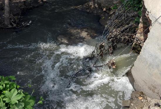 7月24日,郑州,污水正在排入泡死杨树的水池。当问到关于生活污水的治理时,冯女士表示环保局只负责工业污水的处理,而生活污水则是由当地具体的街道办负责。由于这段水域涉及多个街道办,生活污水问题一直没被及时处理。老张 摄