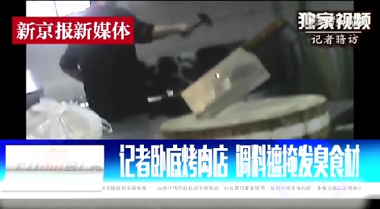 记者通过应聘该店服务员和学徒工暗访,发现这家烤肉店确实存在种种乱象,如将客人吃剩的肉,端回后厨整理后再次摆上取餐台;在过道和垃圾桶之间来回踢的死鱼,最终变成了鱼片;已有异味的鱿鱼,被拌入洋葱和调料,“新装”上台。
