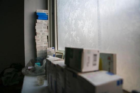 山东临沂蛟龙镇,窗台上堆满了李致康每天吃的药,他需要一天吃四次药,一个月药费需要1000多块。澎湃新闻 兰卉 图