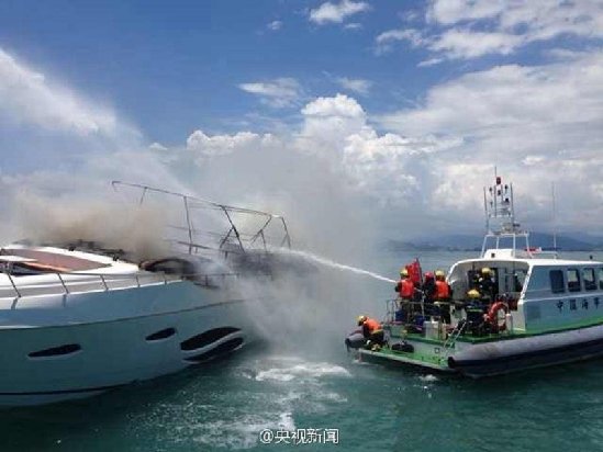三亚豪华游艇起火爆燃 船身上部烧剩骨架