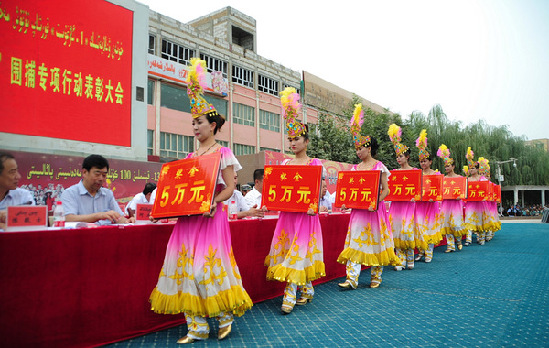 大会对荣获墨玉县8月1日围捕专项行动先进集体、先进个人、举报重要线索的群众及和田地区、于田县参与围捕行动的先进集体和先进个人共奖励423万元。