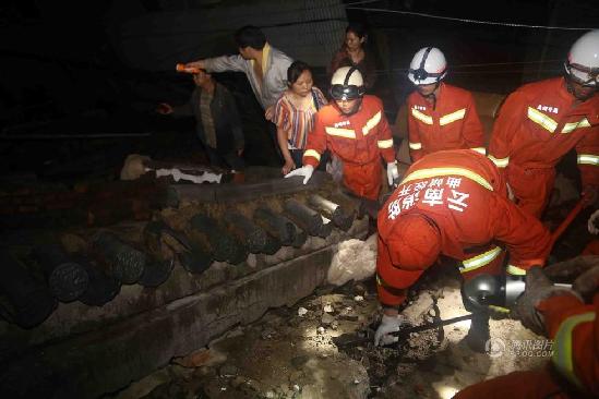 8月4日,救援人员在会泽县纸厂乡搜救一名儿童。新华社发