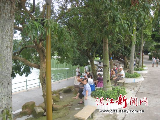 寸金桥公园月影湖旁是市民休闲的好地方