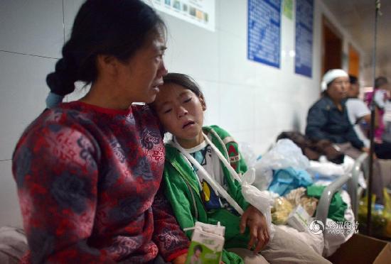 杨正巧10岁,家在龙头山镇翠屏村大槽口,念小学三年级。8月4日10时,重庆晚报记者在鲁甸县人民医院住院部,见到了这个哭得发抖的小女孩。她的手指骨折了,妈妈说,她是为刨出哥哥才弄折了手指。(CFP/渝友)
