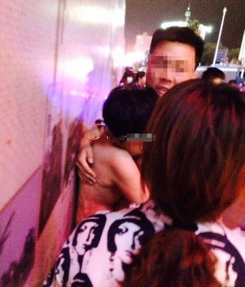 疑为小三被当众扒衣 浑身赤裸和男方搂一起
