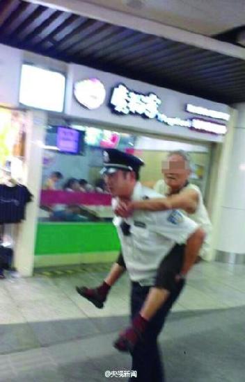 8月9日,认证微博“央视新闻”发了一组照片,称在“南京市新街口地铁站,一位腿脚不便的老人乘坐地铁,地铁工作人员主动背上老人,跑得一身大汗”。截止昨天,这条微博已经引来近1.2万个点赞,南京地铁员工瞬间成了不少网友心中的楷模。昨天下午,扬子晚报记者来到新街口站,找到图中背老人的小伙子居文广。原来事情并非此前所传“乘车老人突发不适”,而是另有“隐情”:她违规在地铁内摆摊,工作人员背她离开。