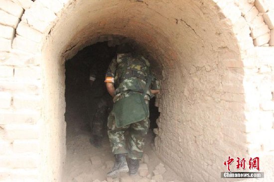 新疆乌什县群众自发参与的大围捕每天都在进行,群众配合民警对重点搜捕区域的以及耕地林带、水渠坟地等每个角落展开了拉网式大清查,每天正常搜捕的武警、警察、民兵都在上千人,两名逃犯至今已经一个月余。图为搜捕人员进入砖窑内排查。陶拴科 摄