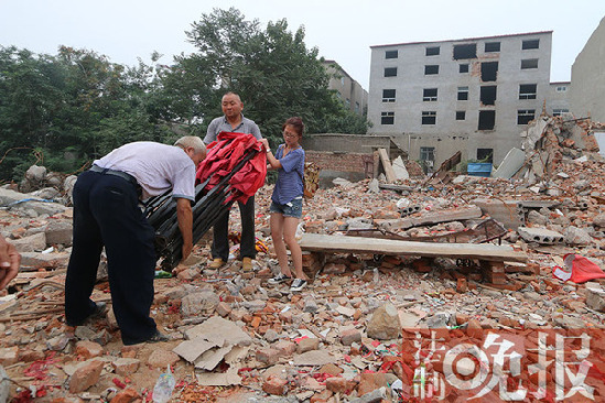 据法晚记者了解,8月11日下午,新郑市纪委有关工作人员找到张红伟夫妻二人了解情况。今天上午,当地公安机关也到废墟上找到他们了解案情。